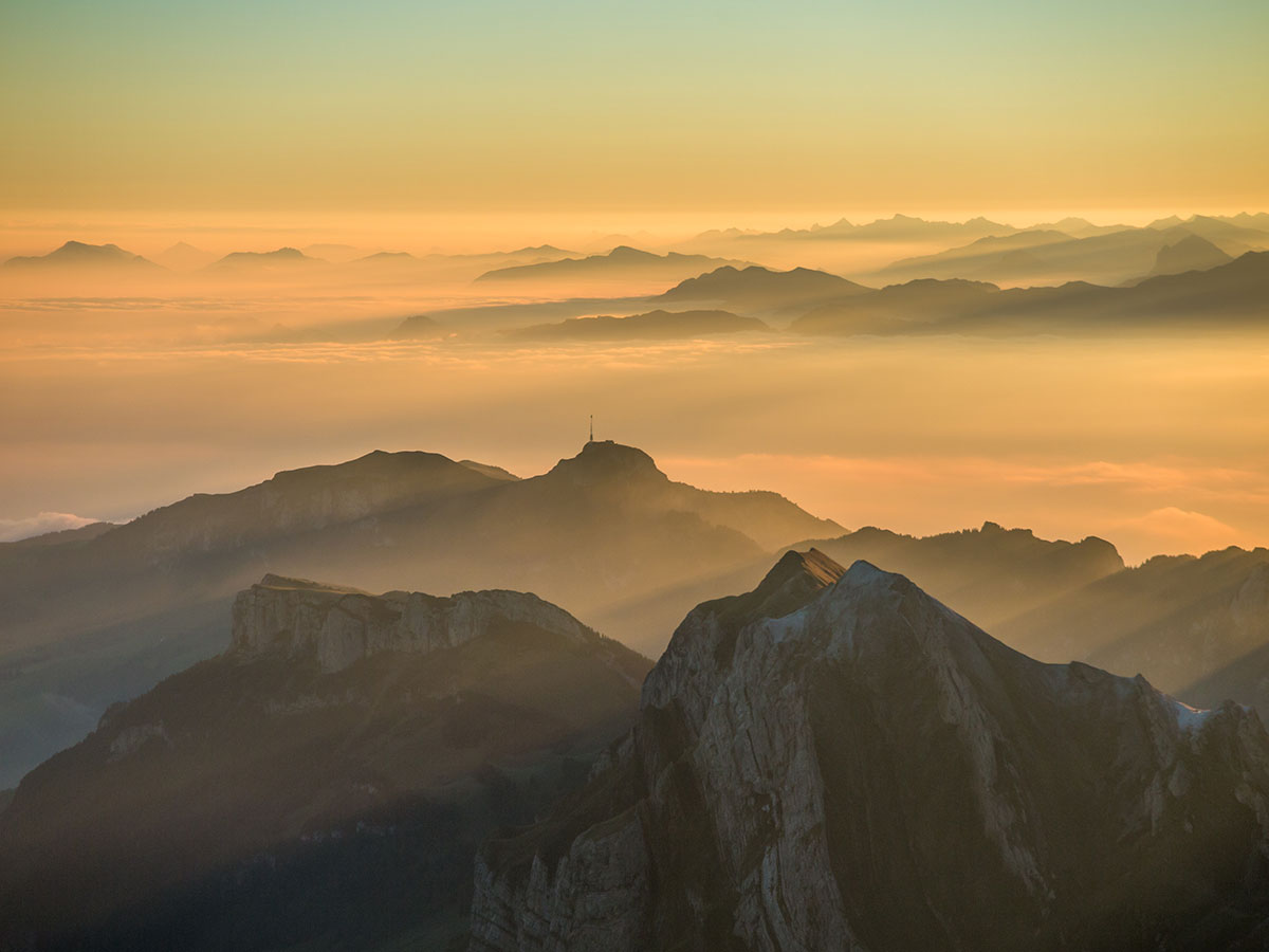 Trauerkarte "Berge": Nebst der Engelkarte hat der Hospiz-Dienst nun noch eine zweite Trauerkarte. Das Foto hat uns Dr. Peter Böhi aus Altstätten unentgeltlich zur Verfügung gestellt. Er ist ein leidenschaftlicher Fotograf, dem es gelingt, die Schönheiten der Natur immer wieder auf eindrückliche Art und Weise einzufangen.